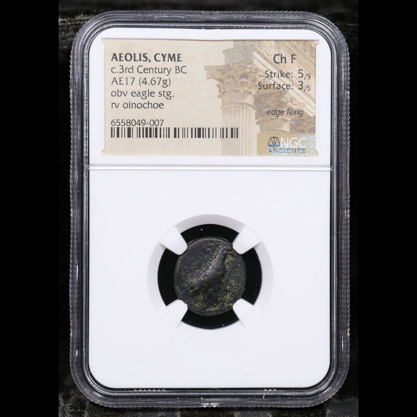 NGC Aeolis,Cyme c.3rd Century BC AE17(4.67g) obv eagle stg. Rv oinochoe Graded Choice Fine By NGC. The Cost Of Slabbing Alone is $50 A Key Date's Pick