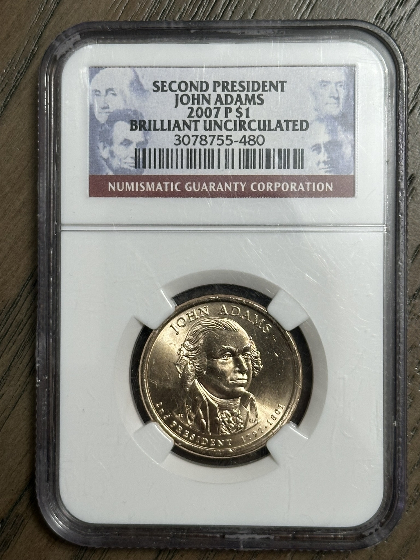 NGC B.U. 2007-P John Adams Presidential Dollar