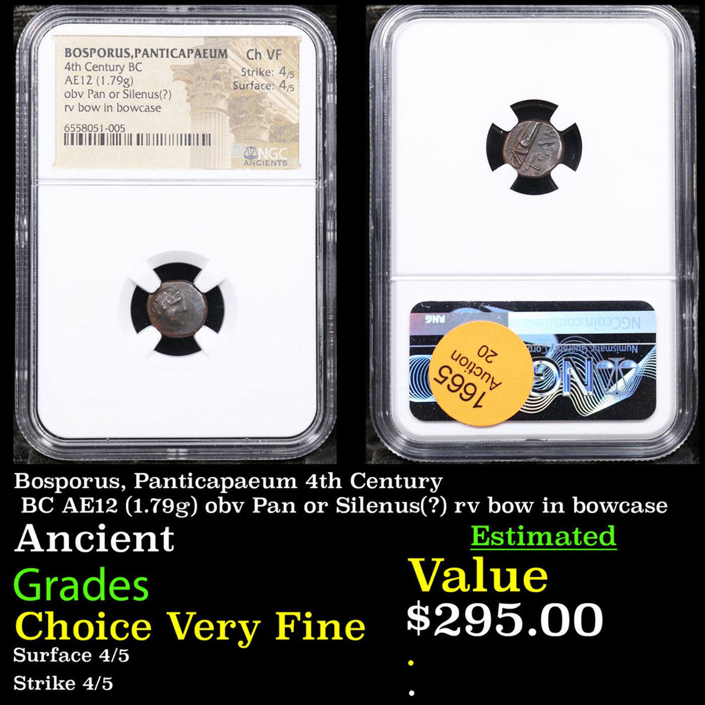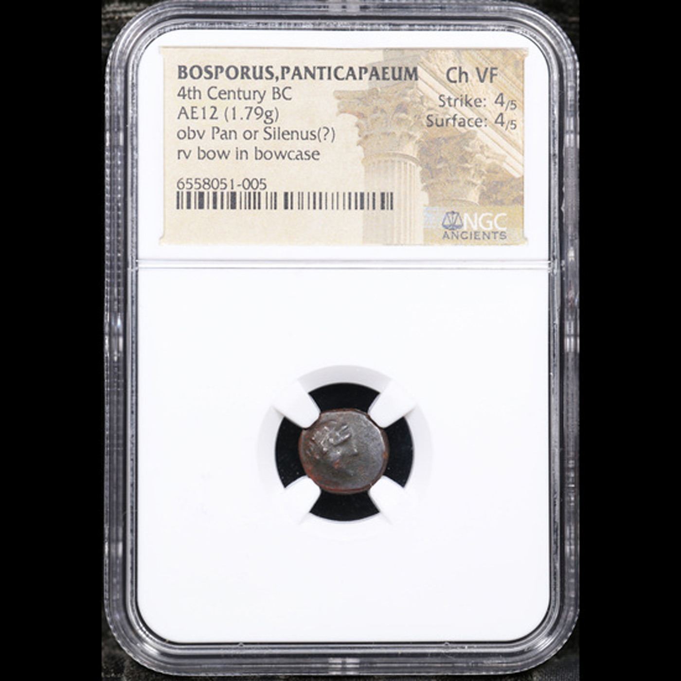 NGC Bosporus, Panticapaeum 4th Century BC AE12 (1.79g) obv Pan or Silenus(?) rv bow in bowcase Graded Choice Very Fine By NGC. The Cost Of Slabbing Alone is $50 A Key Date's Pick