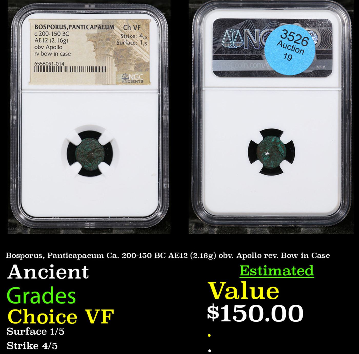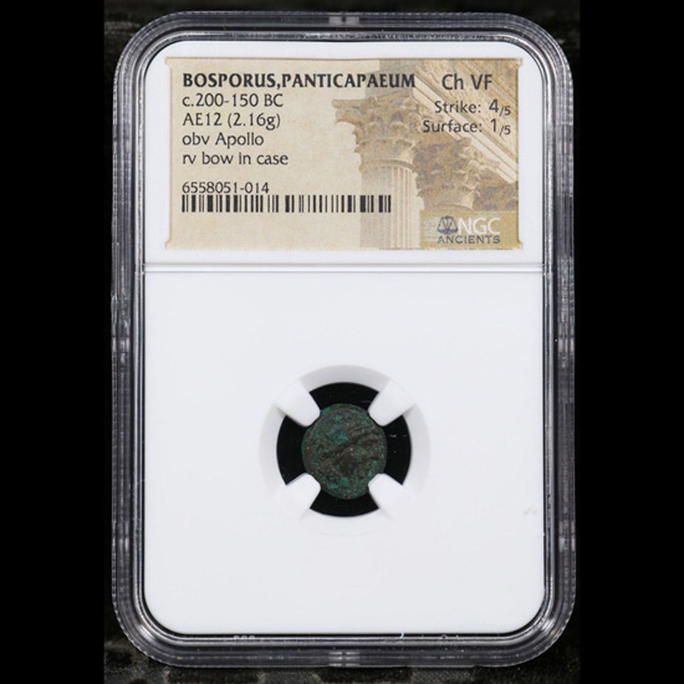 NGC Bosporus, Panticapaeum Ca. 200-150 BC AE12 (2.16g) obv. Apollo rev. Bow in Case Graded Choice VF By NGC. The Slabbing Alone Costs $50 A Key Date's Pick