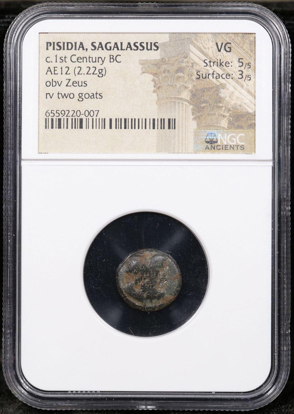 NGC Ca. 1st Century BC Pisidia, Sagalassus AE12 Ancient Obv. Zeus, Rev. Two Goats Graded vg By NGC