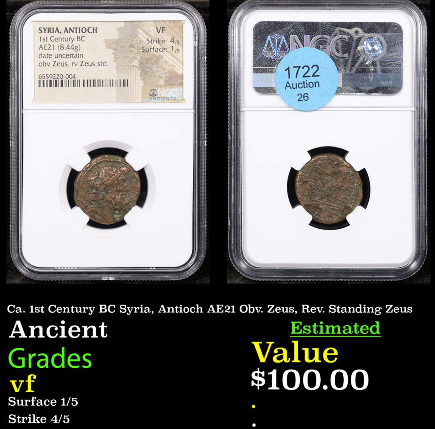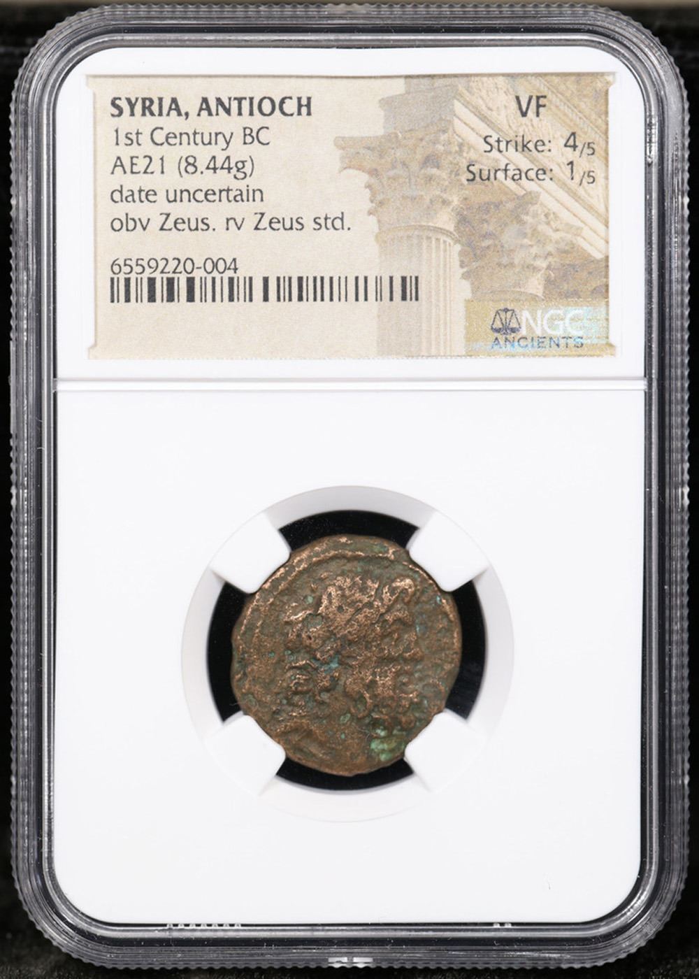 NGC Ca. 1st Century BC Syria, Antioch AE21 Obv. Zeus, Rev. Standing Zeus Ancient Graded vf By NGC.