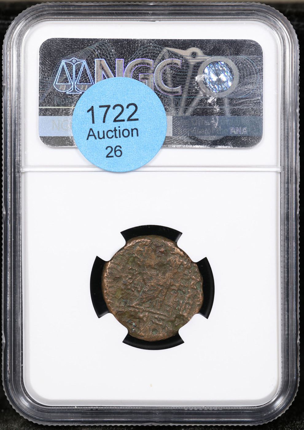 Genuineness of a coin refers to the authenticity of the coin. That the coin is the denomination stated, made of the metal such coin was made of and minted by the proper minting authority in the year stamped on the coin. Genuineness specifically does not include the grade of the coin. Coin grading is a subjective description in the opinion of the cataloguer or third party grading service. It is the bidder’s responsibility to determine condition and value of the coin or lot.
