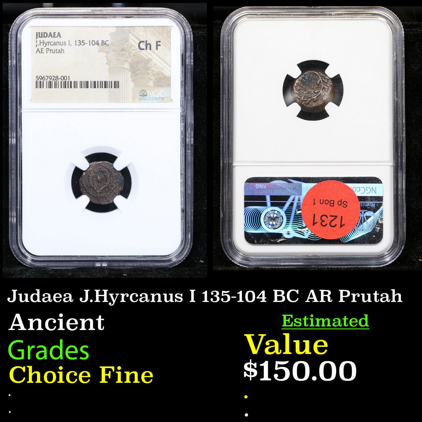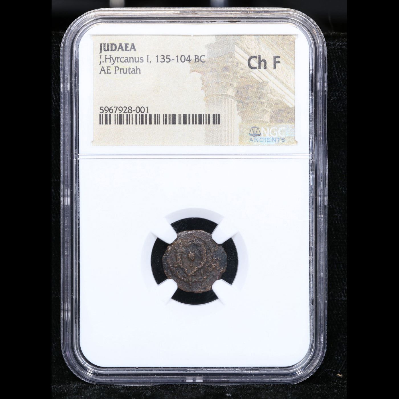 NGC Judaea J.Hyrcanus I 135-104 BC AR Prutah Graded Choice Fine By NGC.