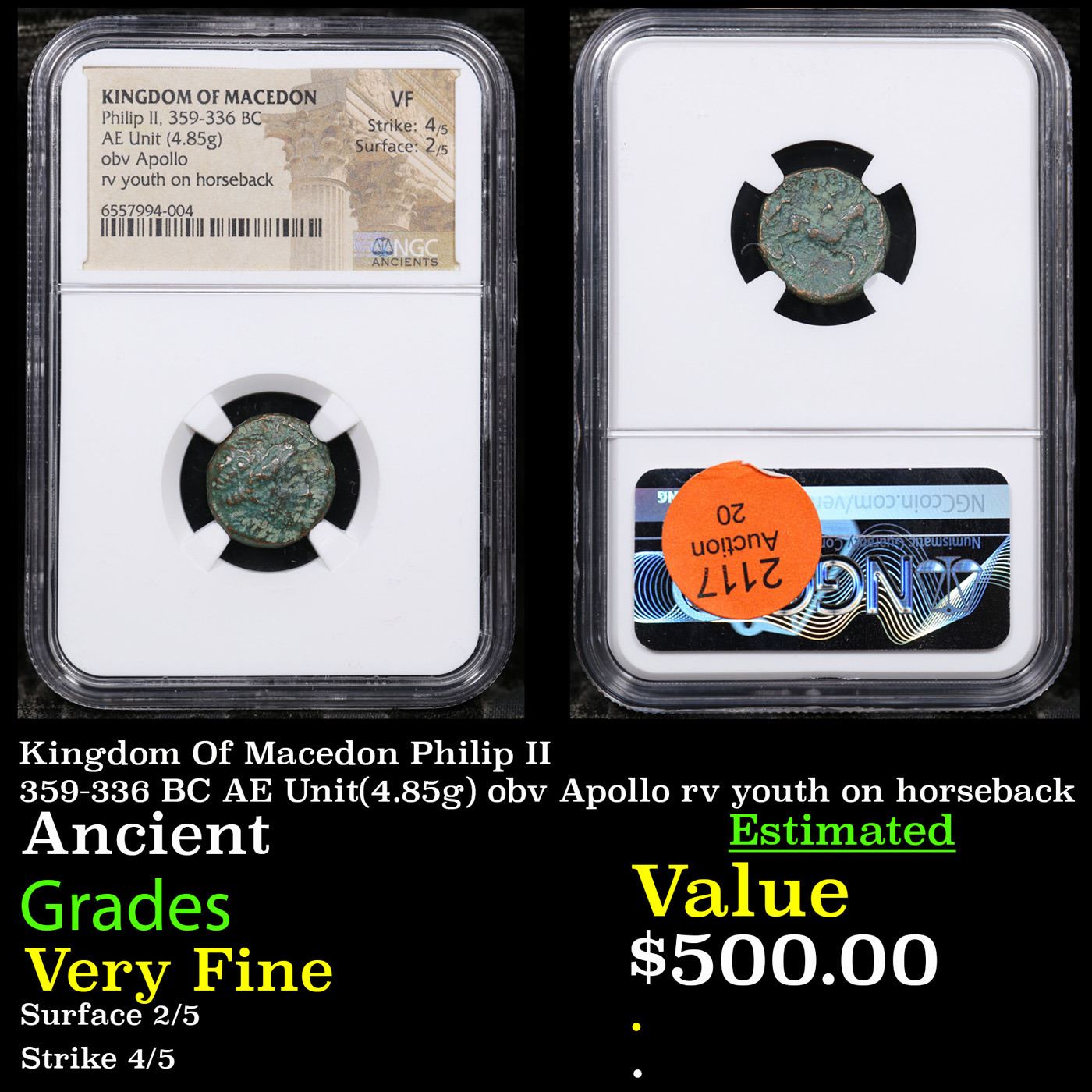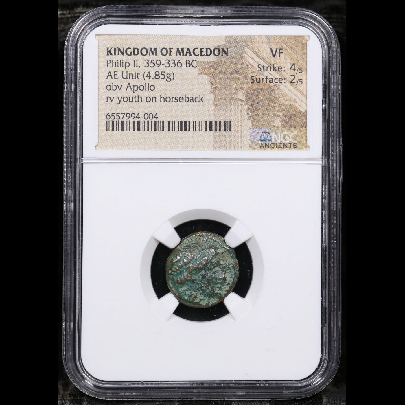 NGC Kingdom Of Macedon Philip II 359-336 BC AE Unit(4.85g) obv Apollo rv youth on horseback Graded Very Fine By NGC. The Cost Of Slabbing Alone is $50 A Key Date's Pick