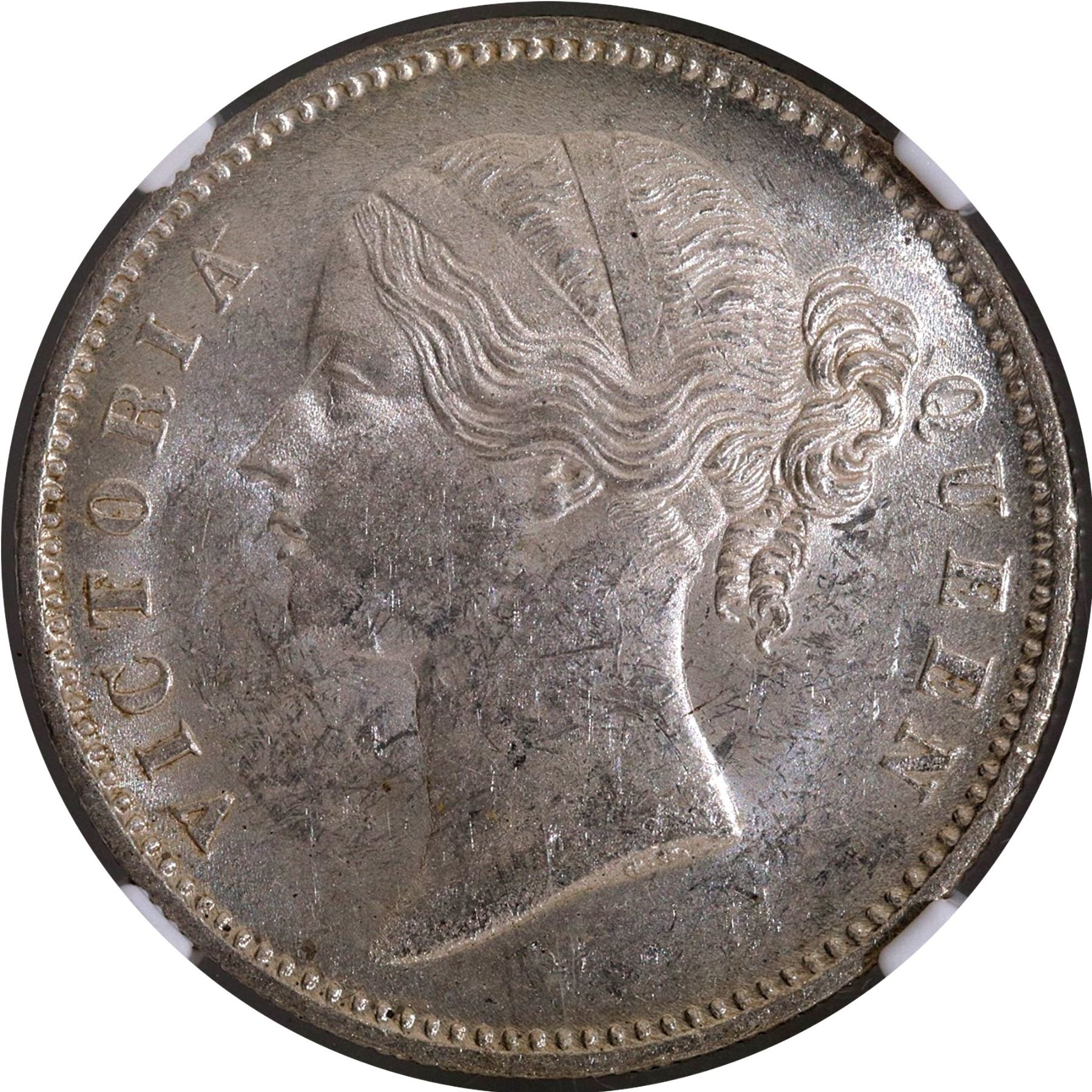1840, Victoria Queen, Silver Rupee, Divided Legend, Calcutta/Bombay Mint, W.W. raised, 28 berries (13L+15R), (PR # 56-57/GK # 163-172), ghost image visible, scratches, graded & slabbed by NGC as MS 61.