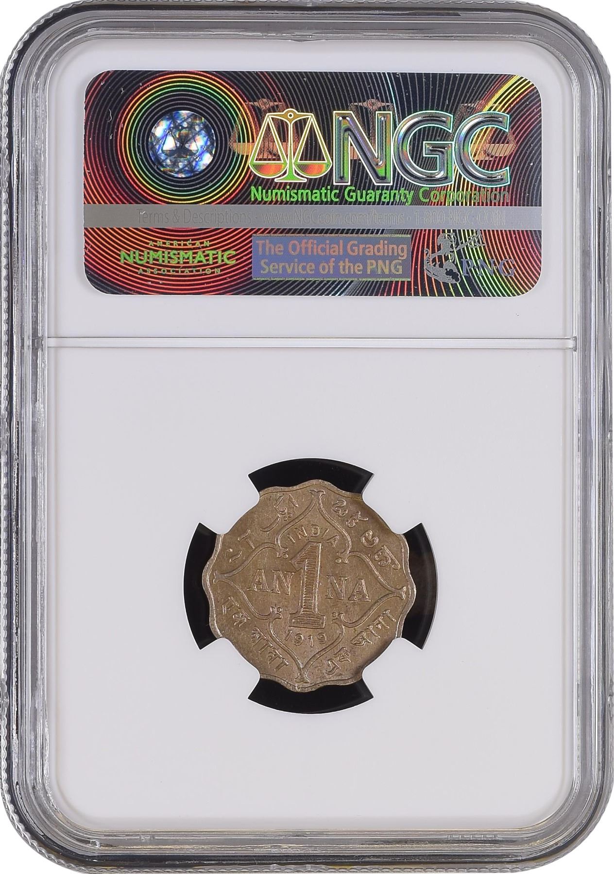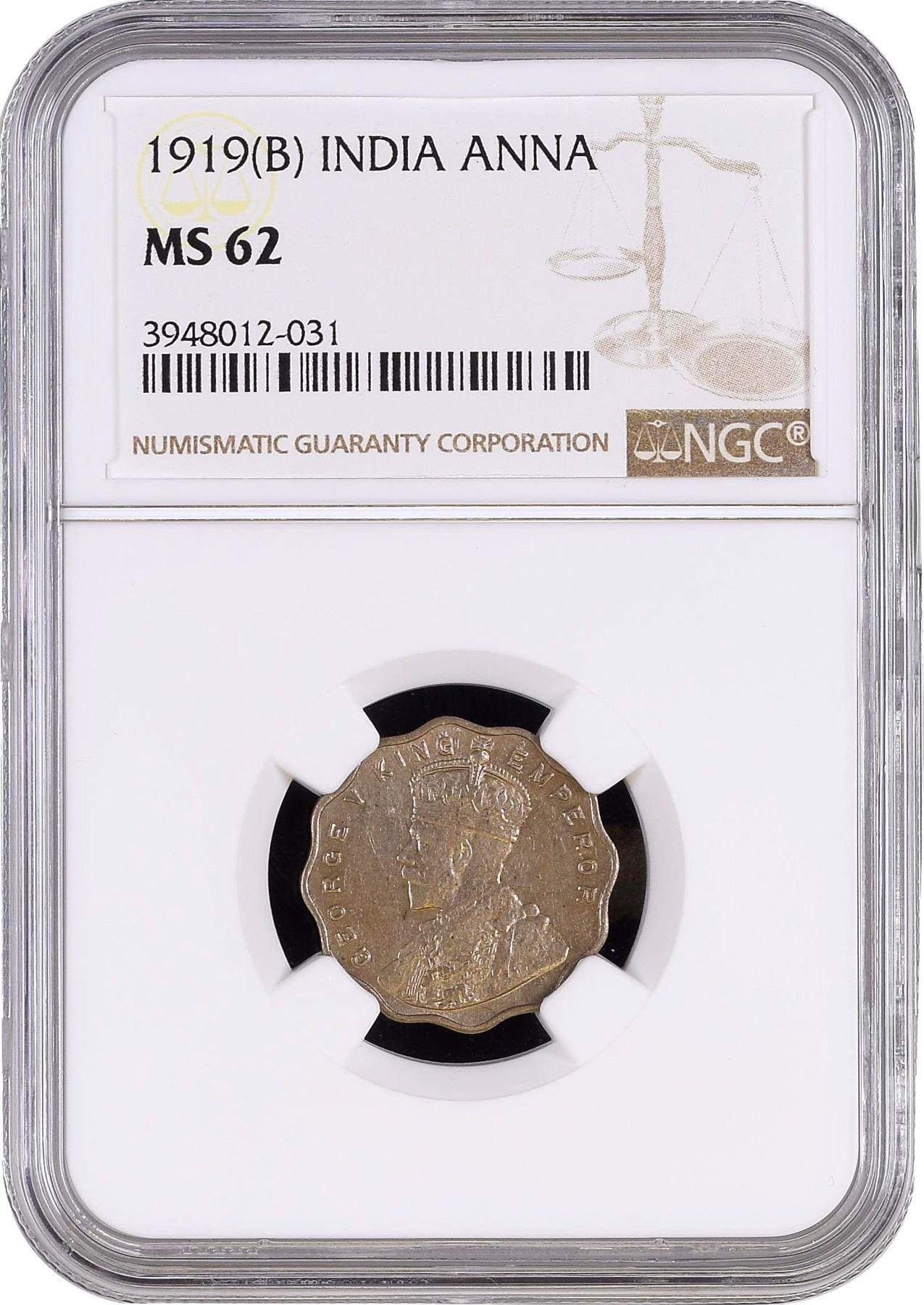 1919, King George V, Cupro-Nickel 1 Anna, Bombay Mint, no dot, (PR # 949/GK # 1149), toning, graded & slabbed by NGC as MS 62.