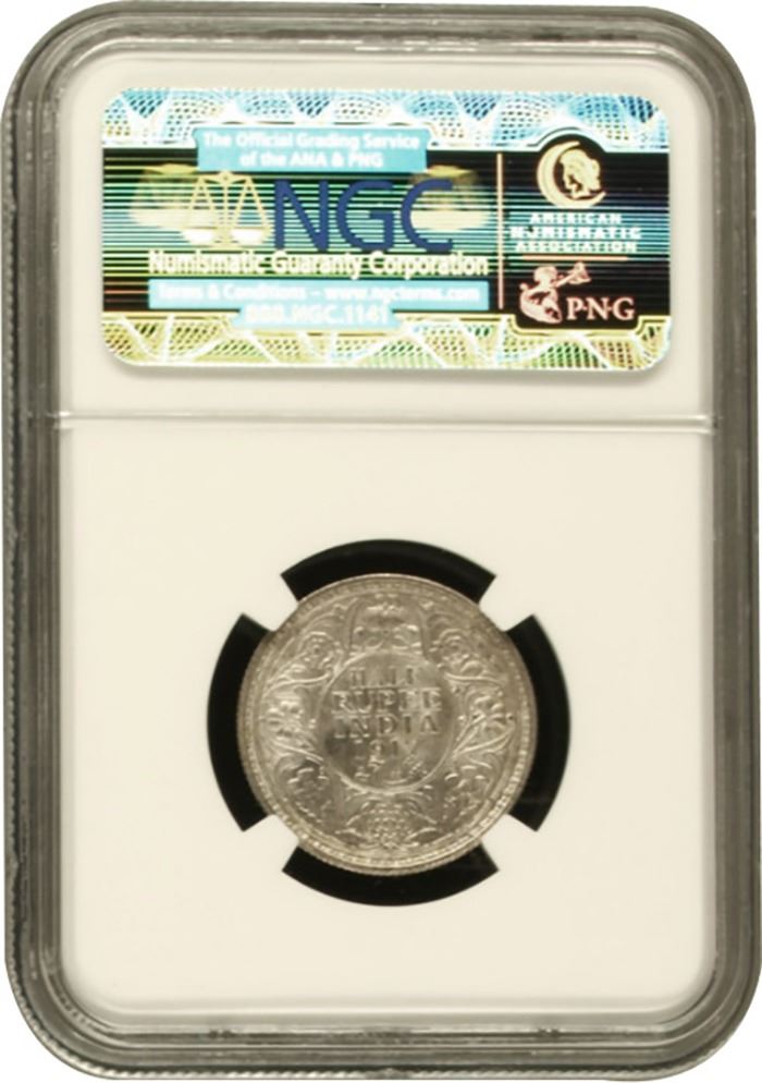 NGC MS 63 Graded Silver Half Rupee Coin of King George V of Bombay Mint of 1917.