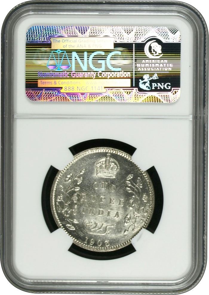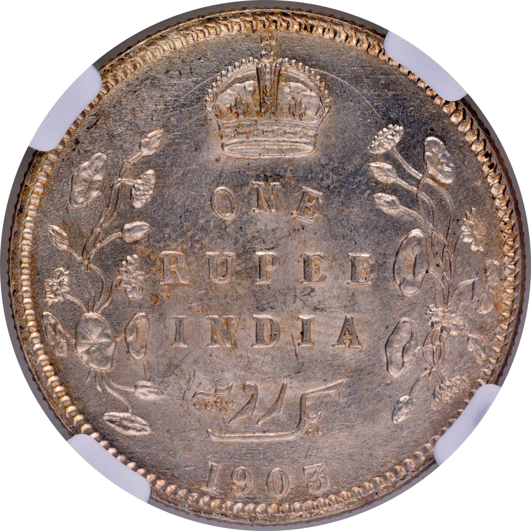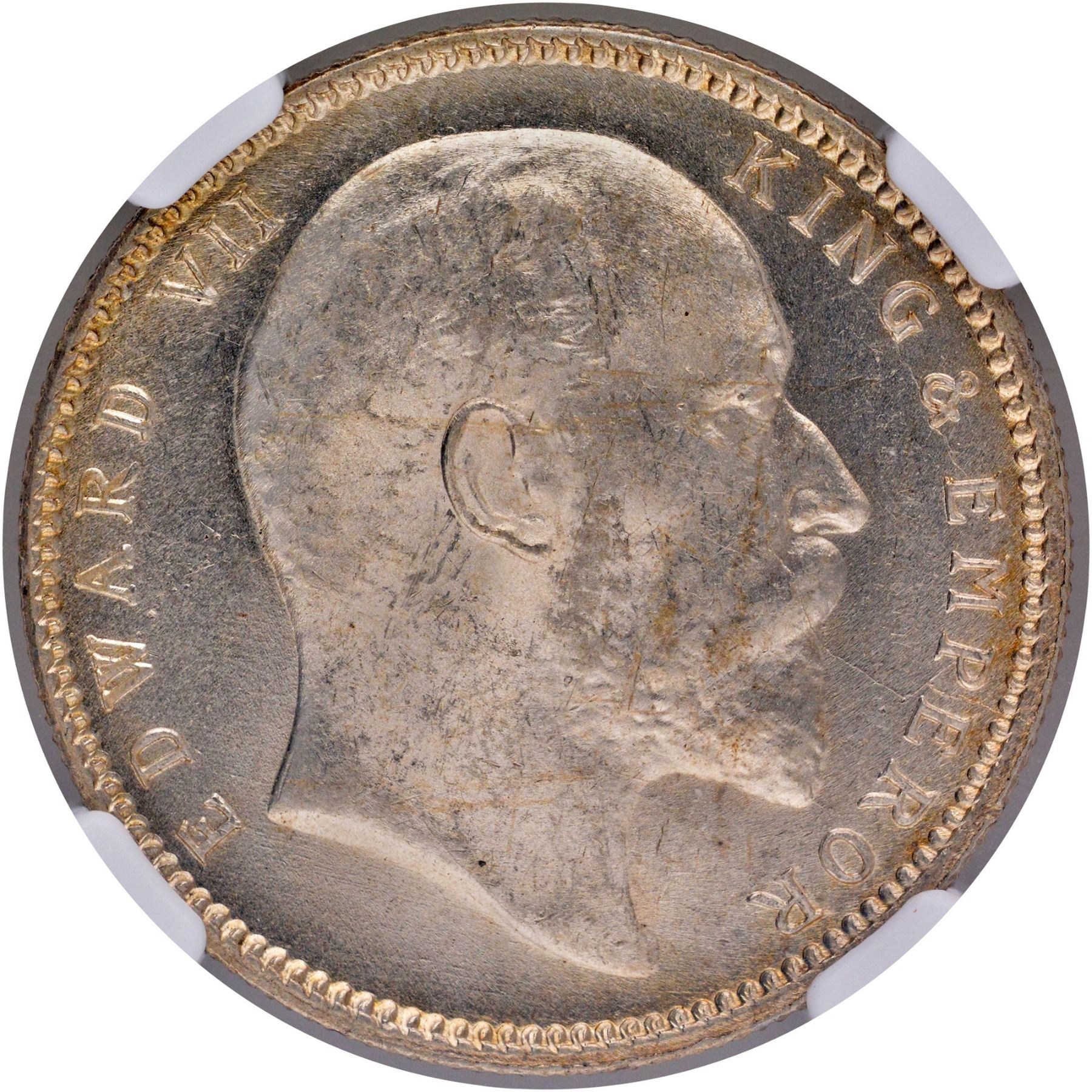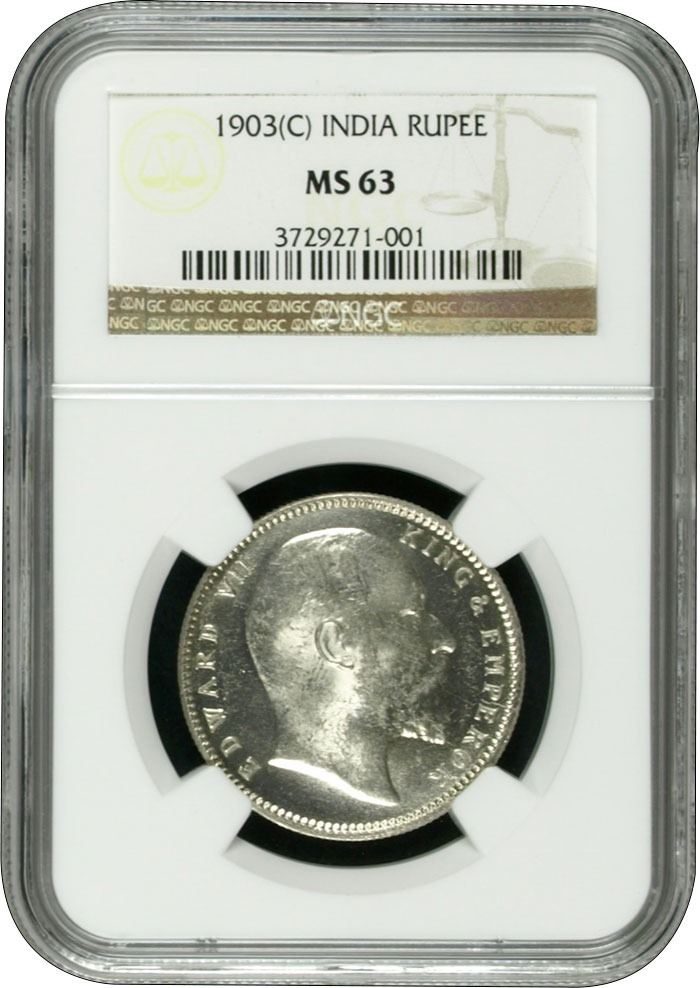 1903, King Edward VII, Silver Rupee, Calcutta Mint, no mm, (PR # 189/GK # 924), ghost impression, strong features, graded & slabbed by NGC as MS 63, Scarce in this grade.