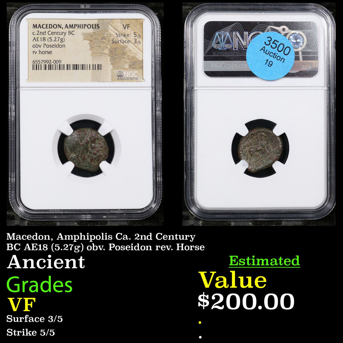NGC Macedon, Amphipolis Ca. 2nd Century BC AE18 (5.27g) obv. Poseidon rev. Horse Graded VF By NGC. The Slabbing Alone Costs $50 A Key Date's Pick
