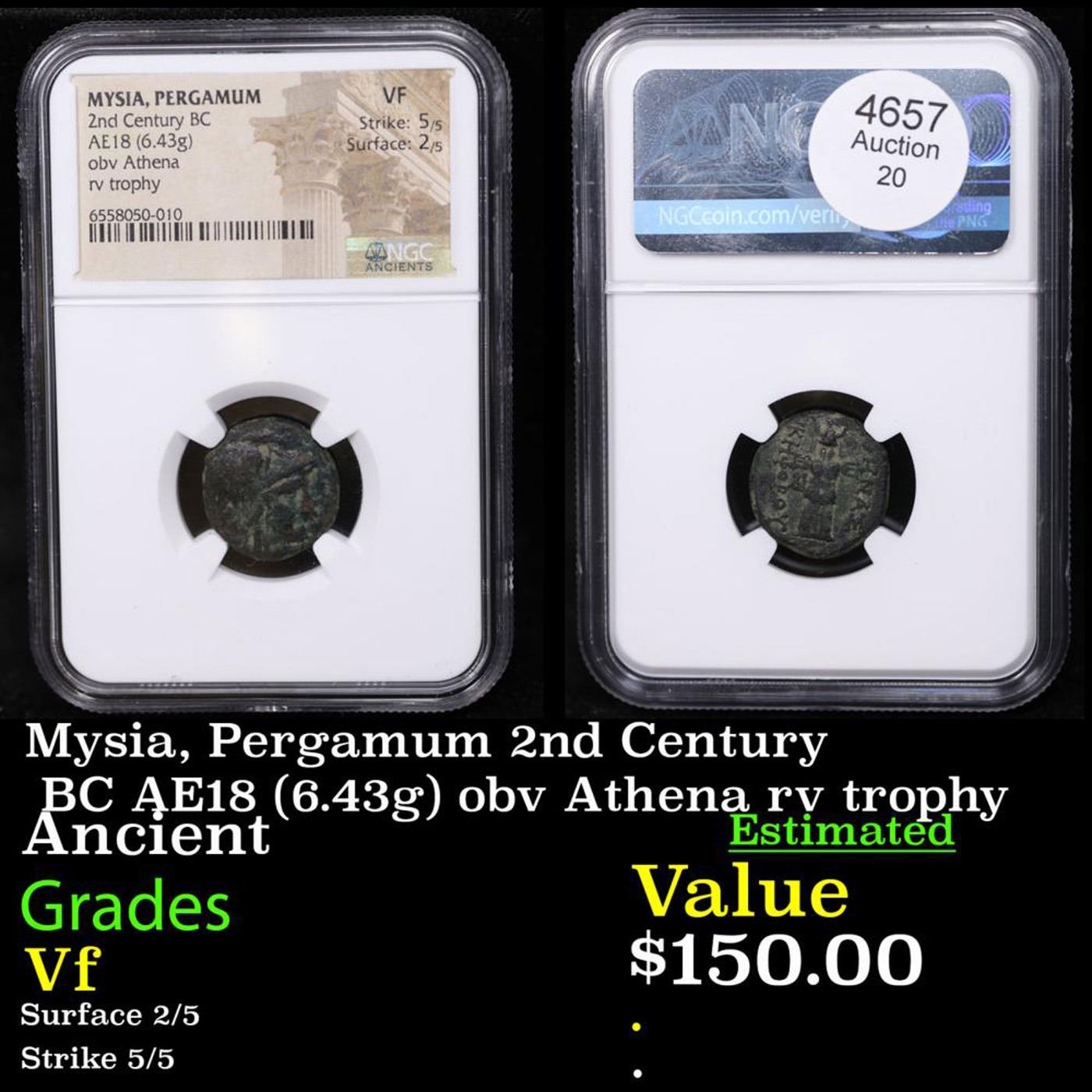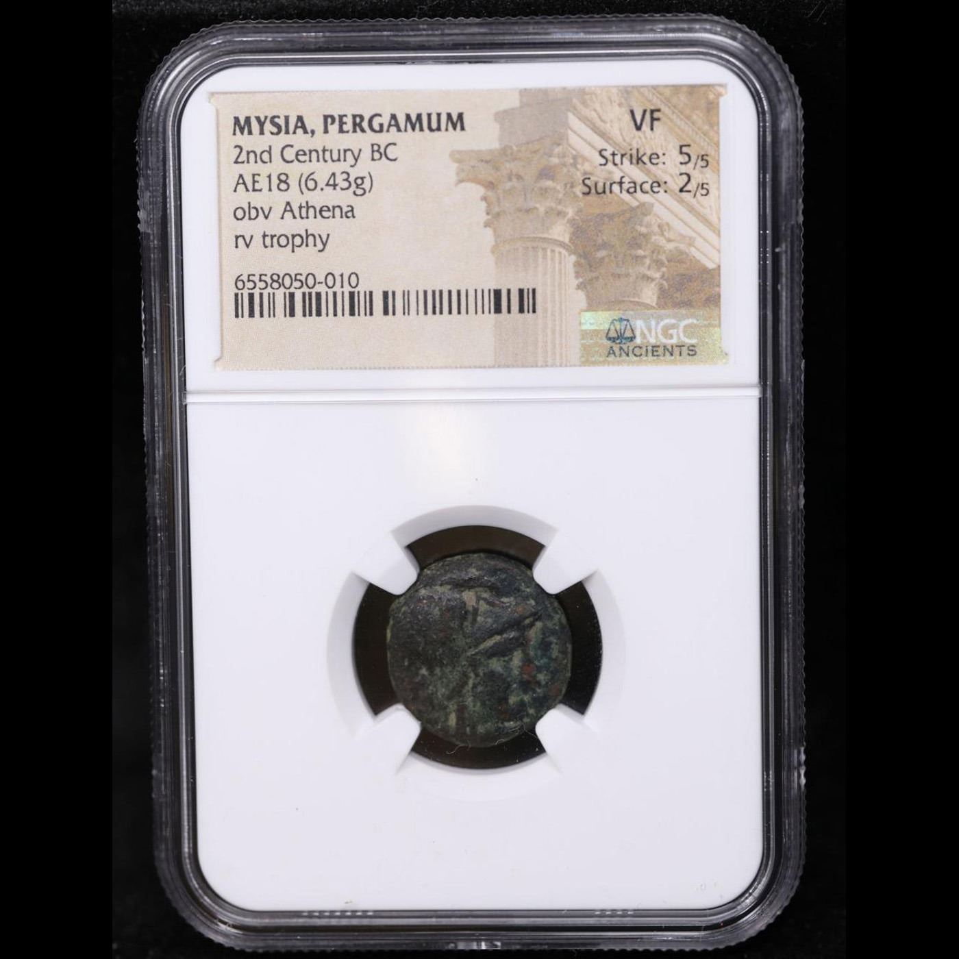 NGC Mysia, Pergamum 2nd Century BC AE18 (6.43g) obv Athena rv trophy Graded Vf By NGC. The Cost Of Slabbing Alone is $50 A Key Date's Pick
