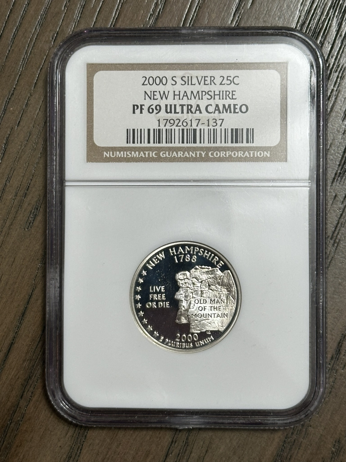 NGC PF69 Ultra Cameo 2000-S Silver State Quarter - New Hampshire