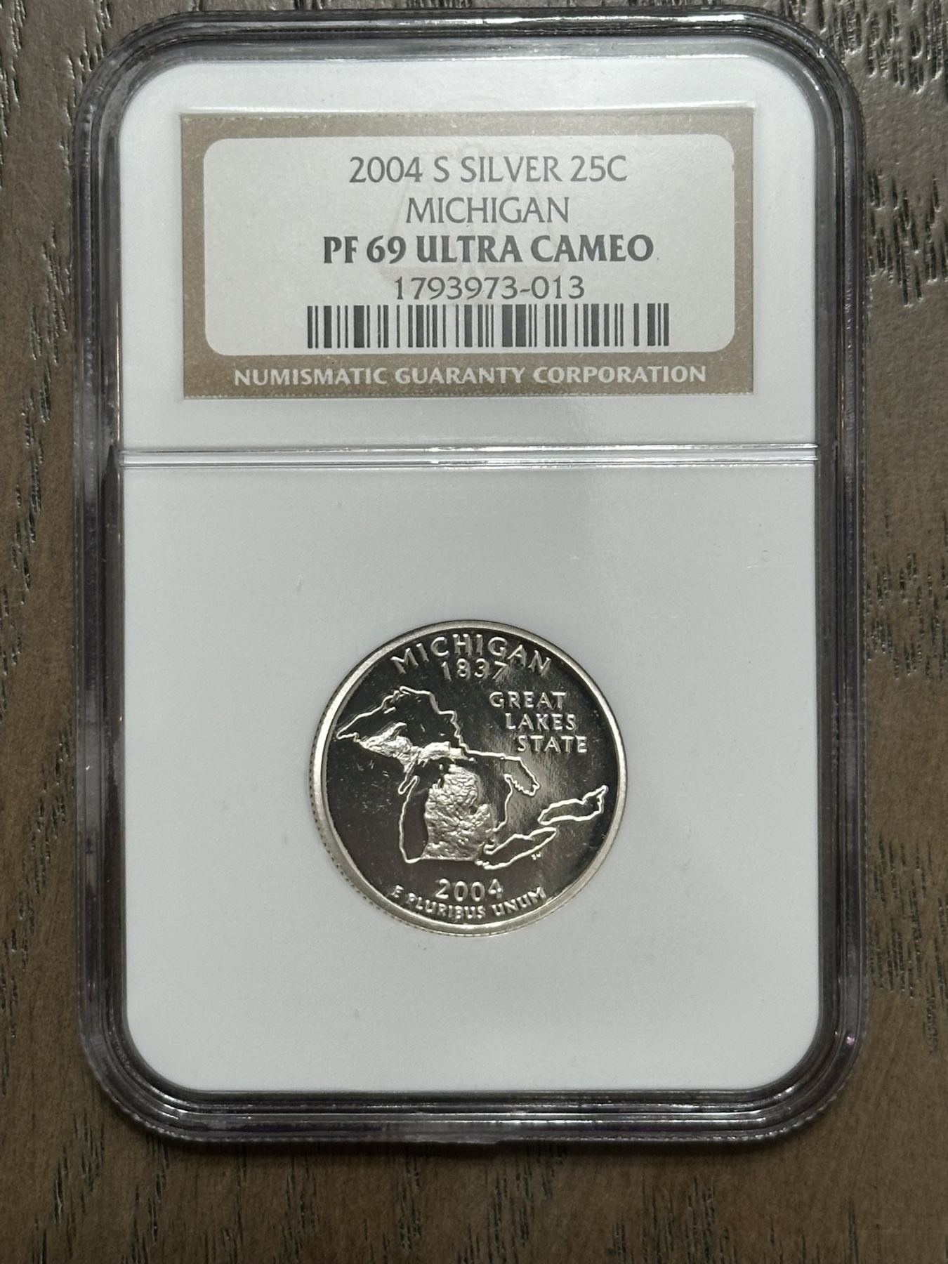 NGC PF69 Ultra Cameo 2004-S Silver State Quarter - Michigan