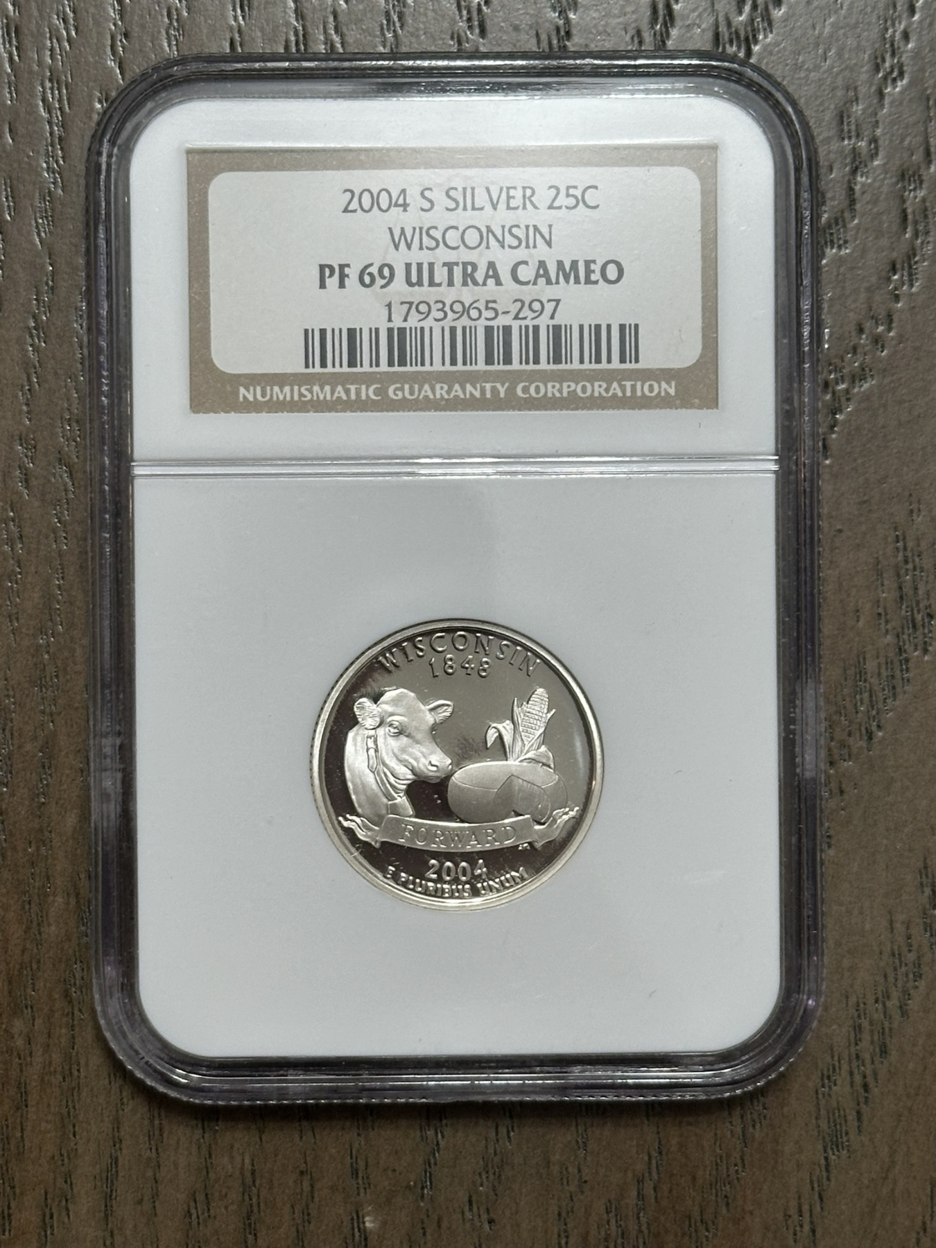 NGC PF69 Ultra Cameo 2004-S Silver State Quarter - Wisconsin