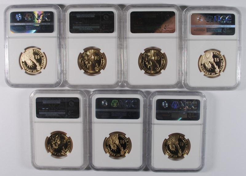 NGC PRESIDENTIAL DOLLAR LOT - ALL DIFFERENT, 4- PF69 ULTRA CAMEO & 3- MS67