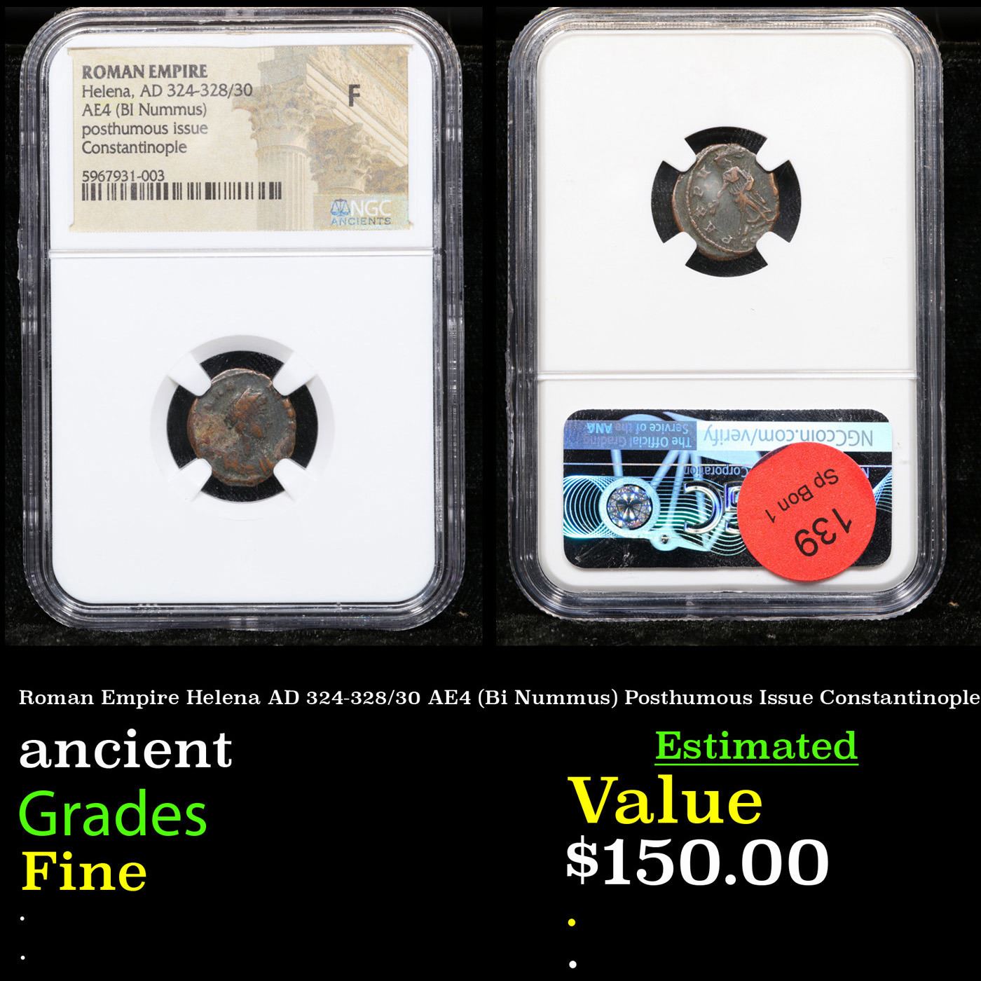 NGC Roman Empire Helena AD 324-328/30 AE4 (Bi Nummus) Posthumous Issue Constantinople Graded Fine By NGC.