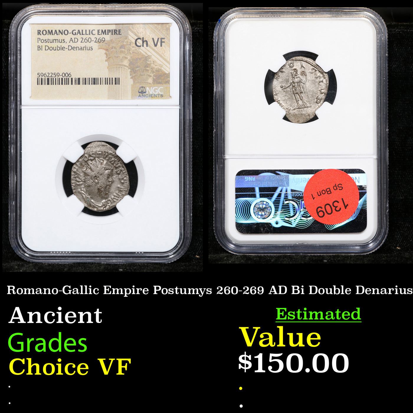NGC Romano-Gallic Empire Postumys 260-269 AD Bi Double Denarius Graded Choice VF By NGC
