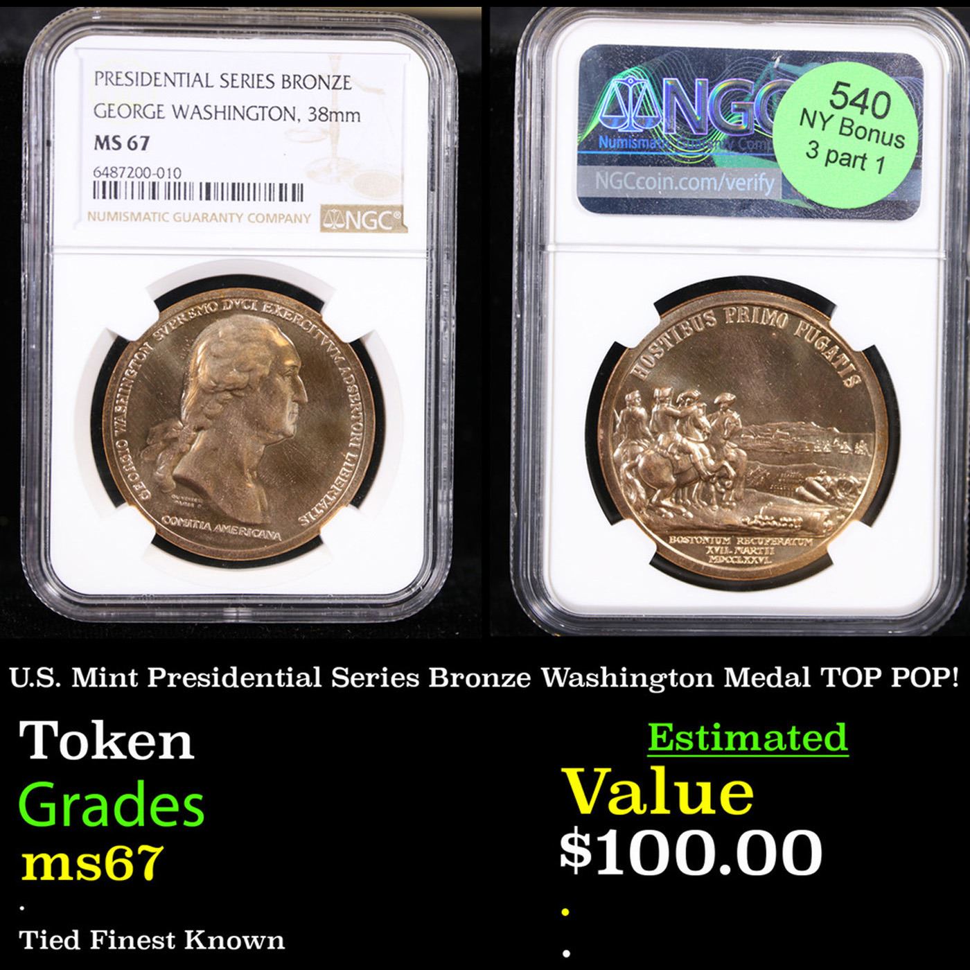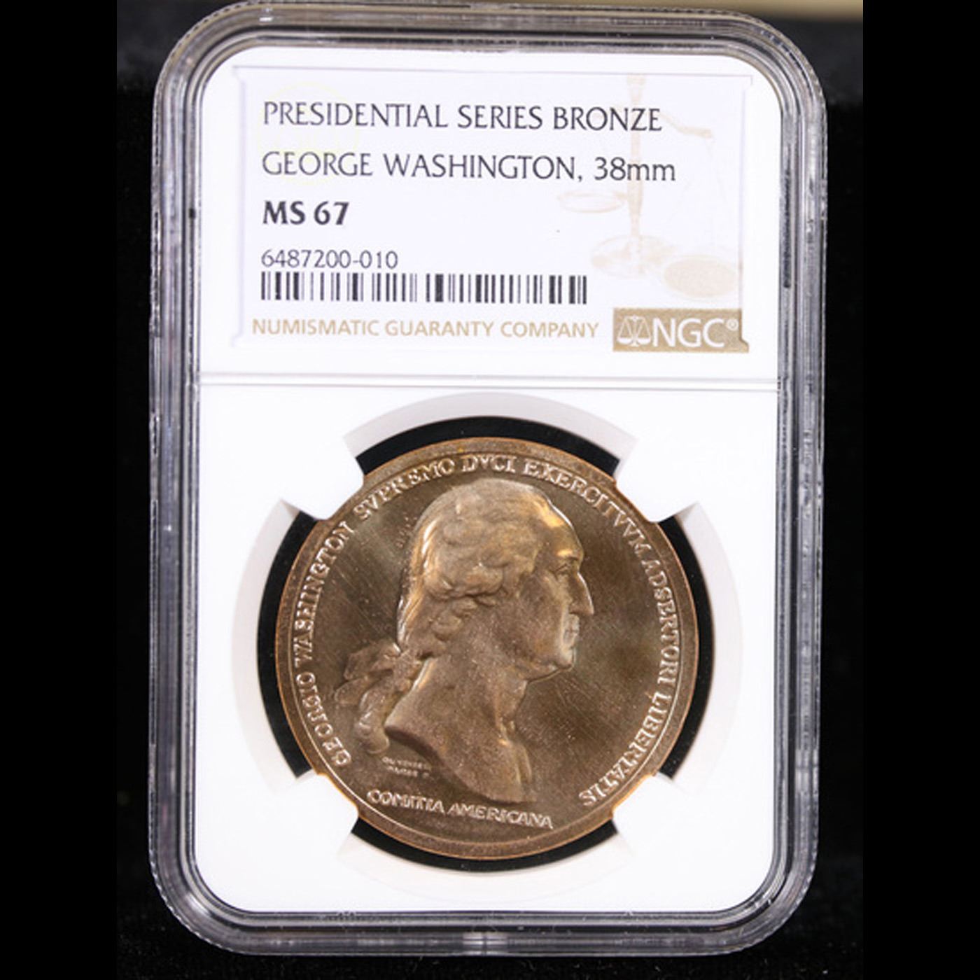 NGC U.S. Mint Presidential Series Bronze Washington Medal TOP POP! Graded ms67 By NGC.