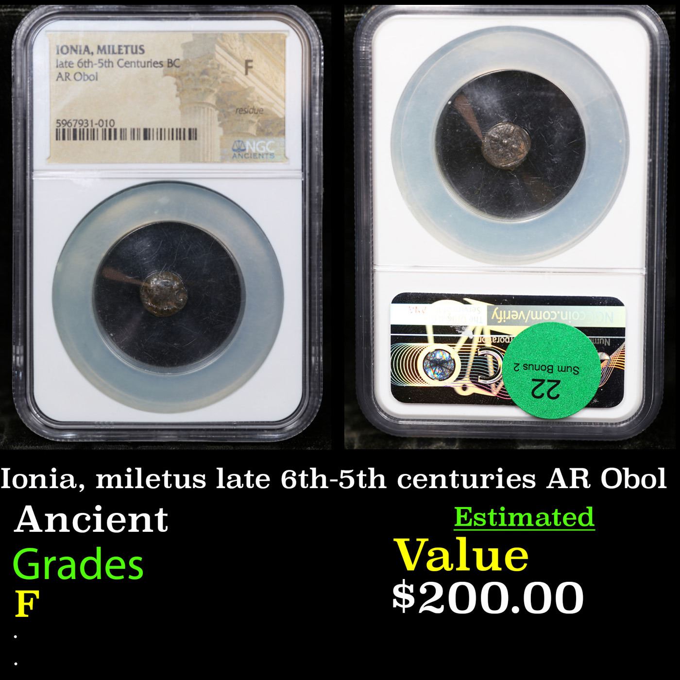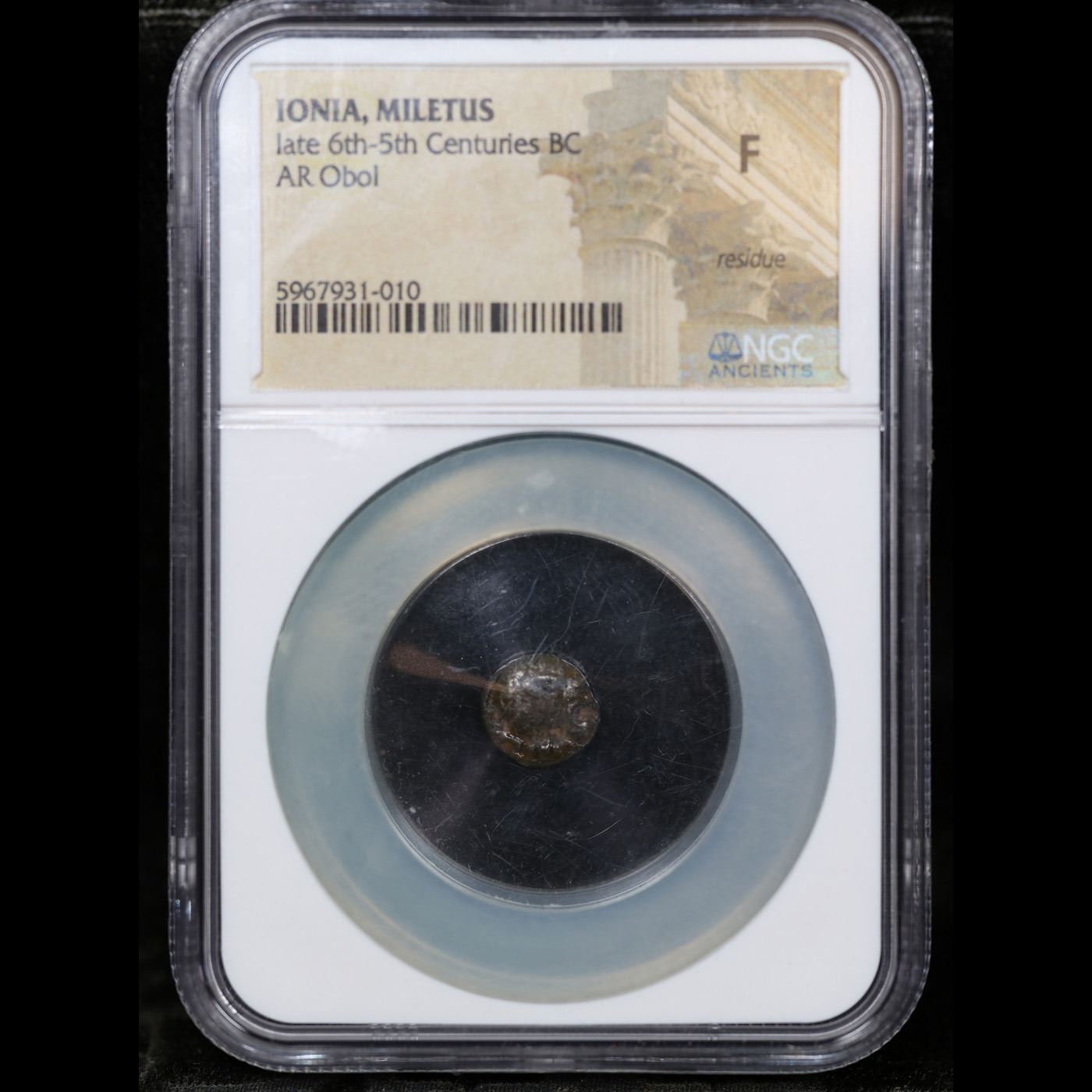 NGC ionia, miletus late 6th-5th centuries AR Obol Oversized NGC Holder Graded F By NGC.