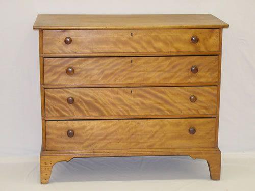 NH HEPPLEWHITE FLAME BIRCH GRADUATED 4 DRAWER CHEST W/ STRAIGHT FRENCH FEET & MOLDED BASE (35 1/2" T X 41 1/2" W X 18 1/2" D) - REFINISHED, REPAIRS, & IMPERFECTIONS