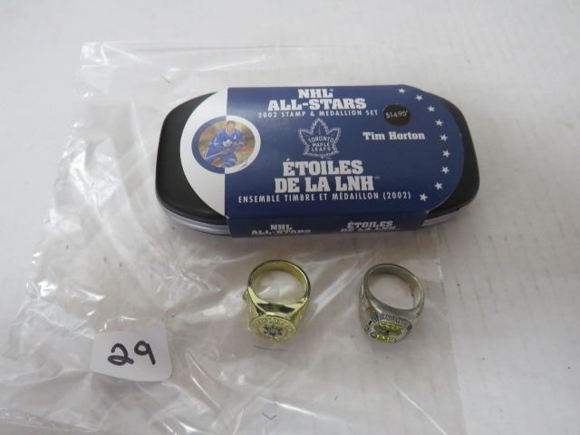 NHL 2002 All Stars Stamp & Medallion Set, 2 replica collector NHL rings Maple Leafs & Dallas Stars
