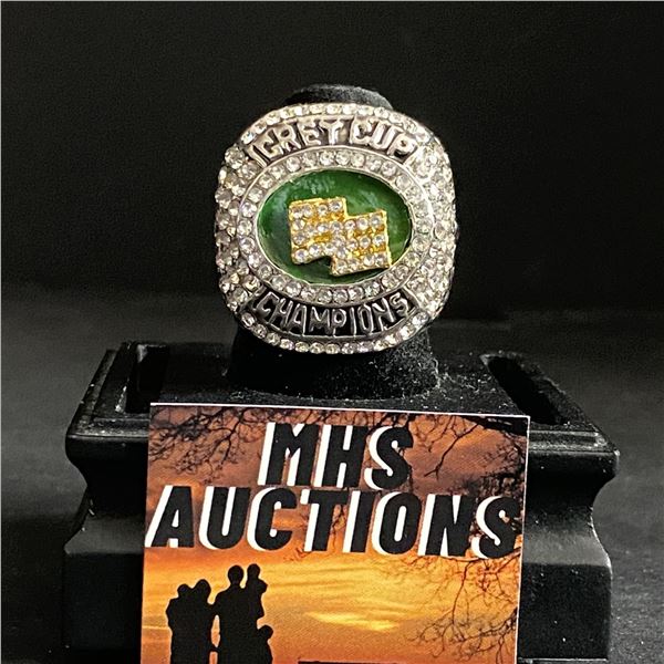 SASKATCHEWAN ROUGHRIDERS C.F.L 2013 "SHEETS" CHAMPIONSHIP RELICA RING (ref391)