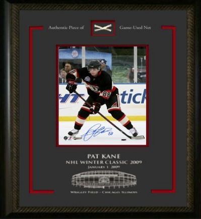 NHL Winter Classic Patrick Kane Hand Signed 8x10 with Piece of the Net. Certificate of Authenticity included- Size 14x18 Inches