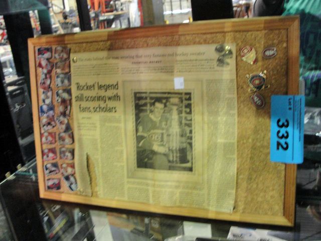 NHL pin set and newspaper clipping