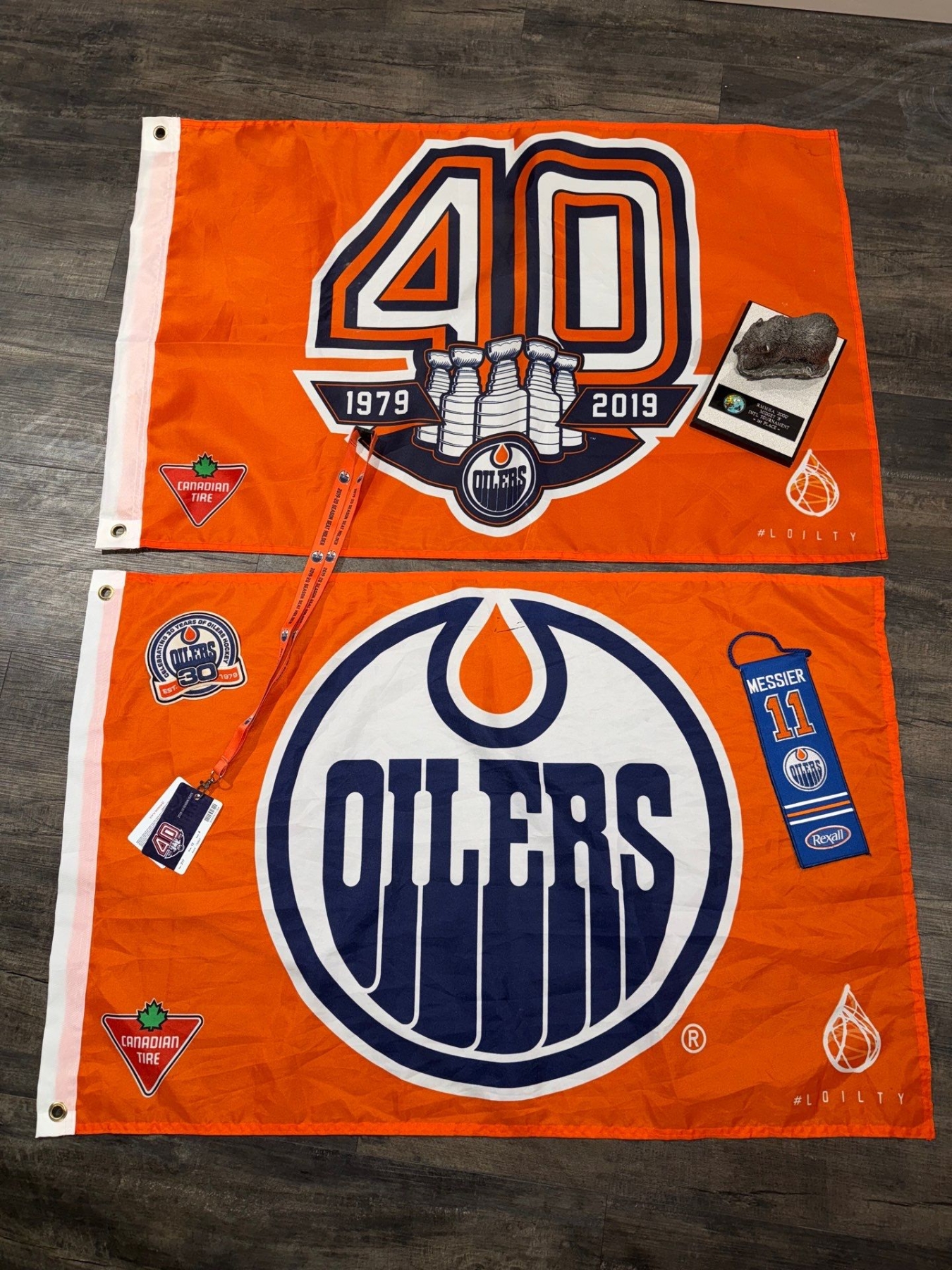 NHL's Oilers Memorabilia- Flags, Mini Statue & More