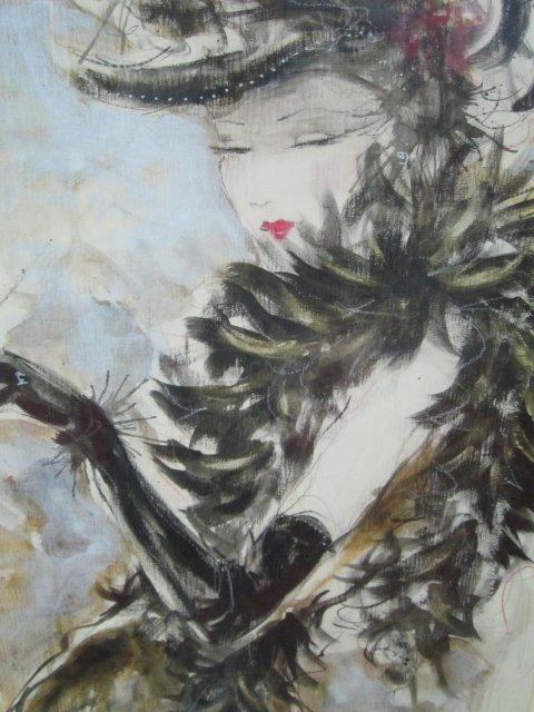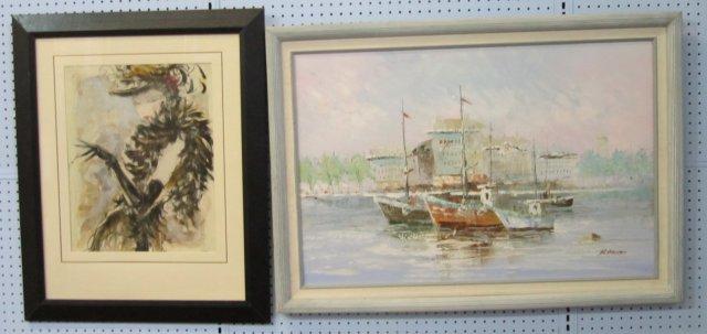 1- "Boats", oil on canvas, approx. 15.5" x 19.25". 1- "Woman", on silk, approx. 36" x 24". Please read our terms of sale.