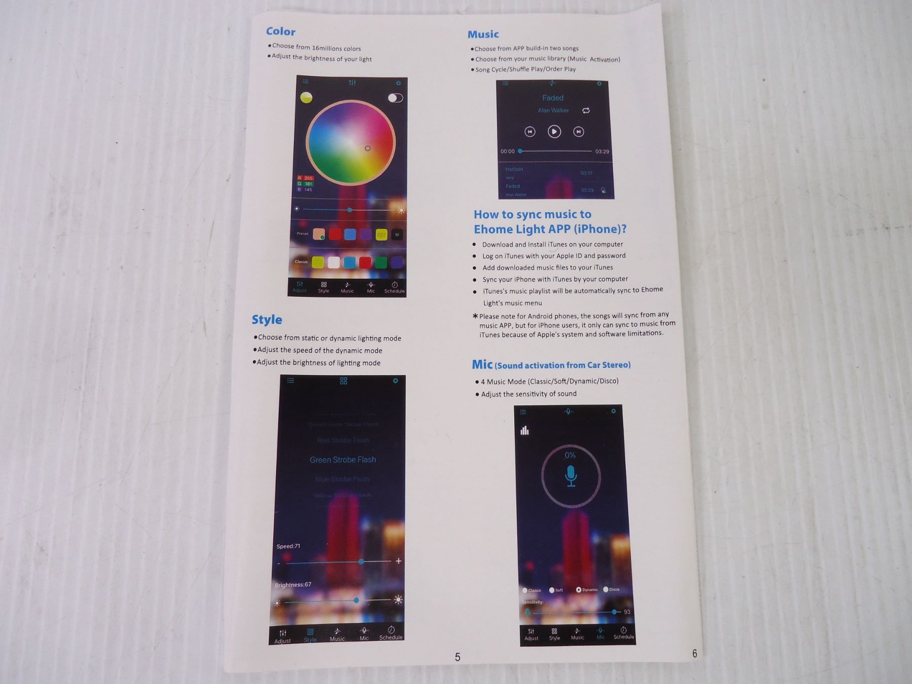 (NIB) 6 Pc. RGB LED Car Interior Lighting Kit with APP Control