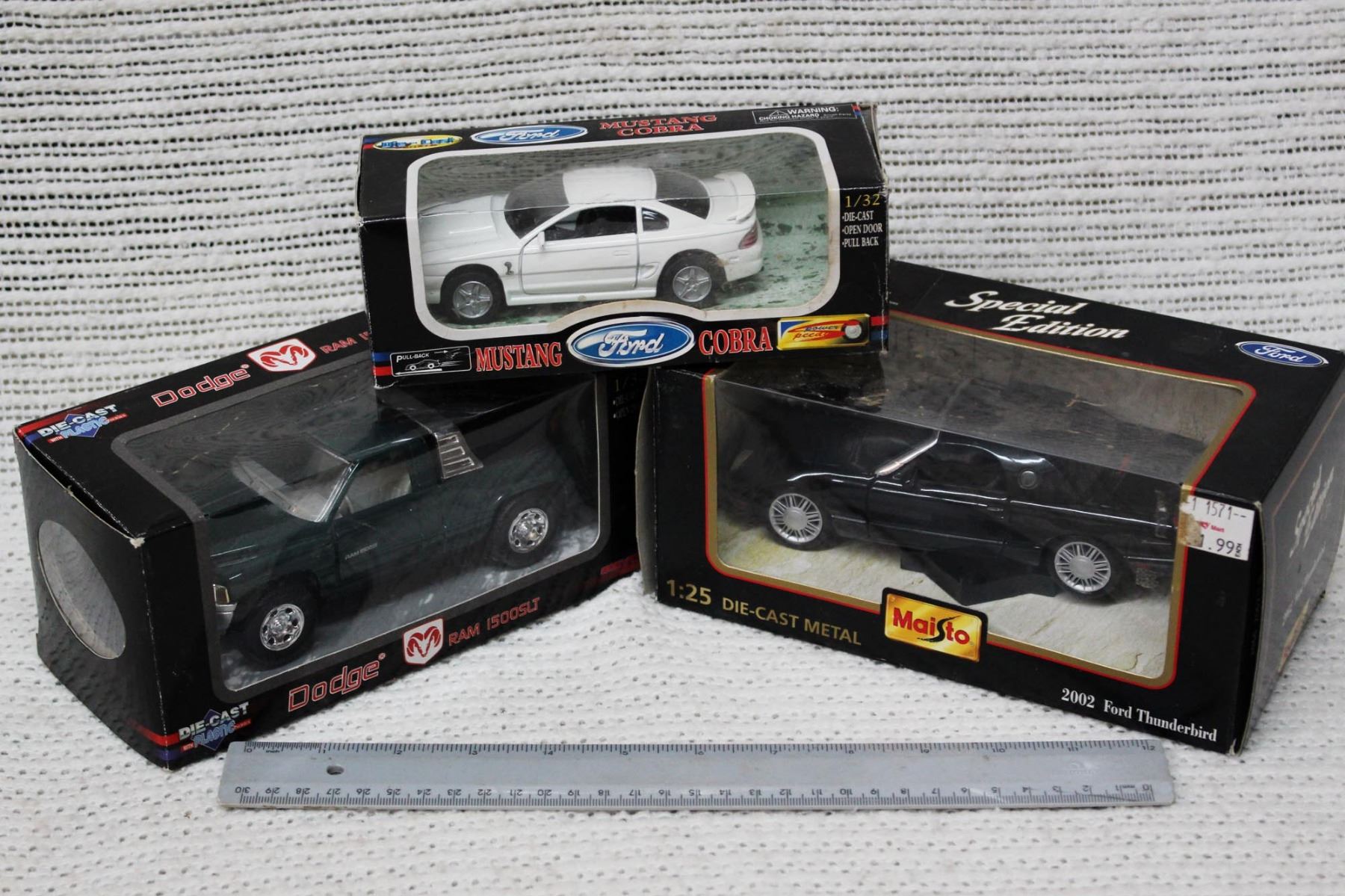 NIB Dodge Ram, Ford Thunderbird and Mustang Cobra Model Cars