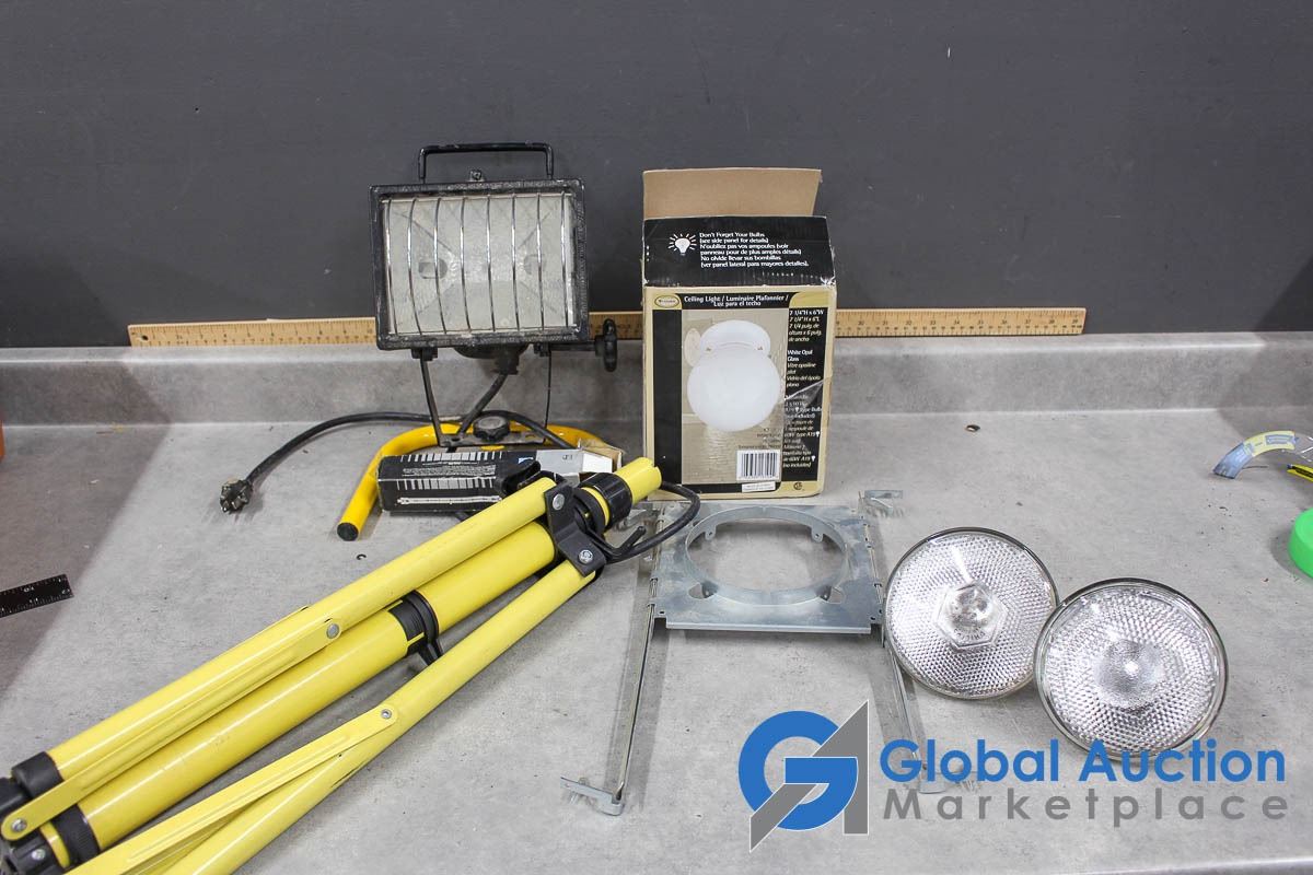 NIB Light Fixture, Work Light w/New Bulb, Tripod Stand & Lighting