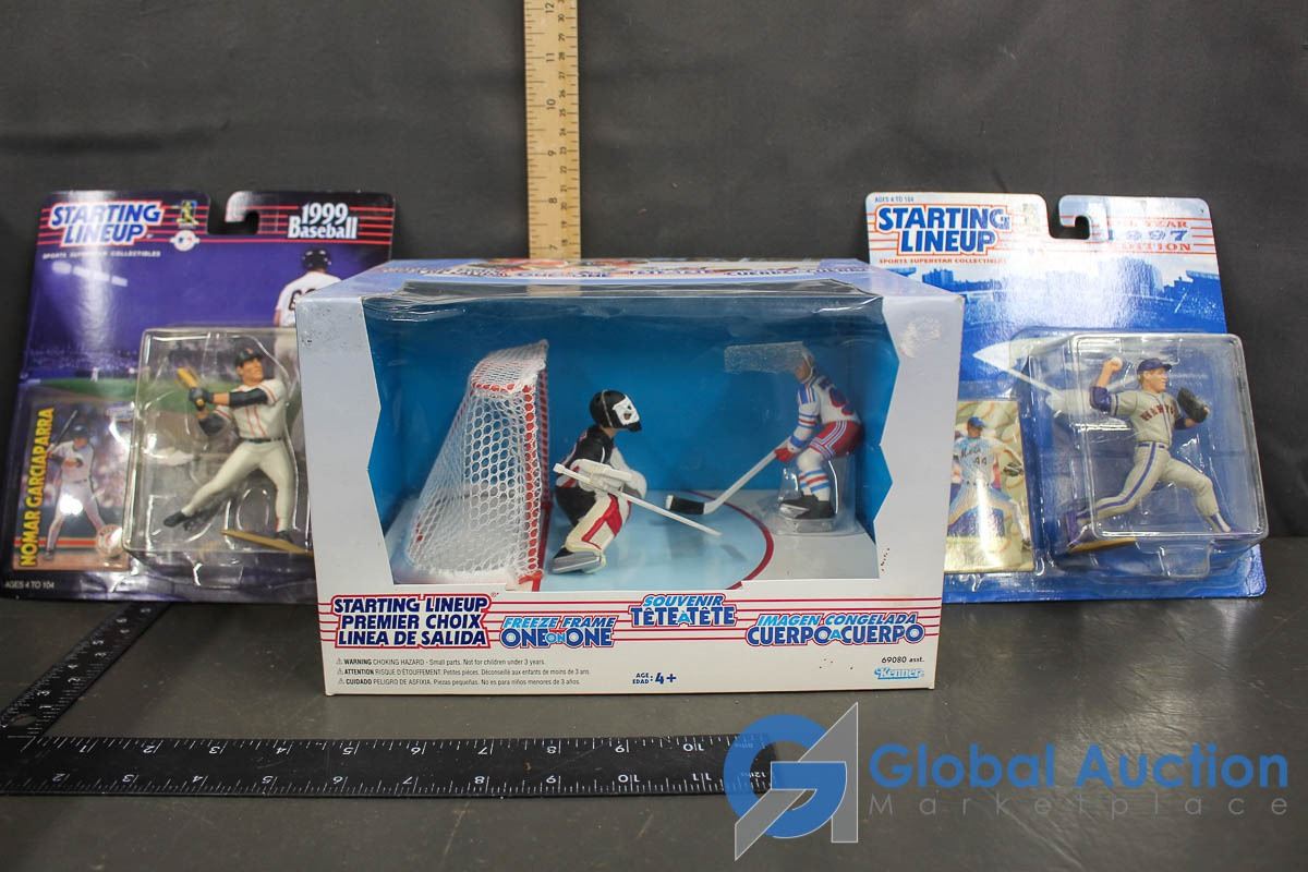 NIB Starting Line Up Freeze Frame Hockey Set, (2) Starting Line Up Baseball Figures