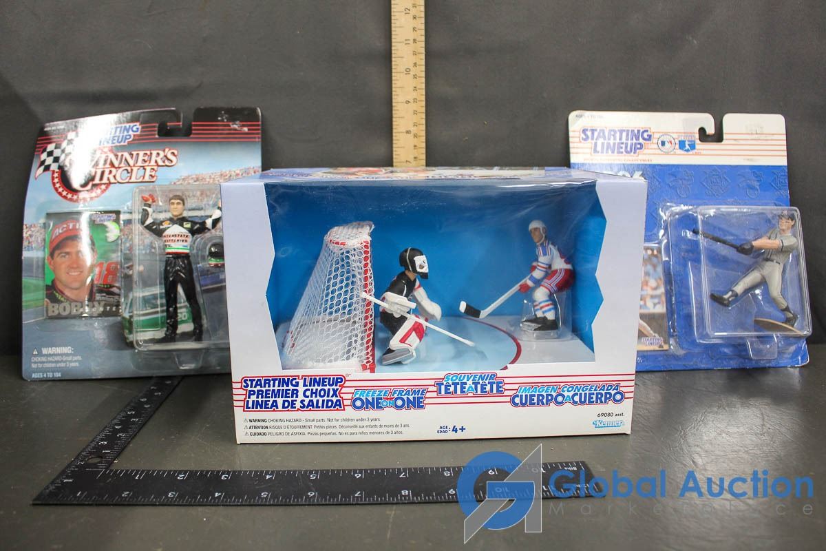 NIB Starting Line Up Freeze Frame Hockey Set, (2) Starting Line Up Baseball Figures