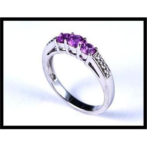 This rich 14K white gold ring has beautiful color and an elegant design. 3 round cut pink sapphires that weigh .30 carats are set in with 8 full cut diamonds. A size 6-3/4, it measures 4 millimeters (5/32 inches) wide.
