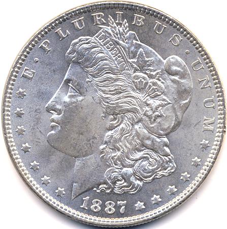 NICE 1887 MORGAN SILVER DOLLAR-MS 64 BELOW GREY SHEET 64