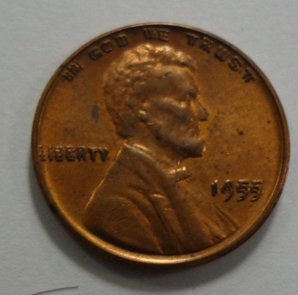 40 BU 1955/55 DOUBLE DIE BU RED CLEANED, HAS A SPOT ON OBVERSE EST 2100.00-2300.00 GS VERY FINE = $1650