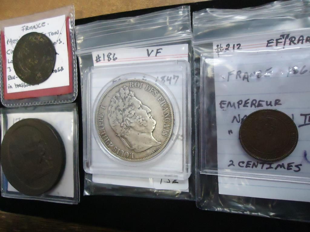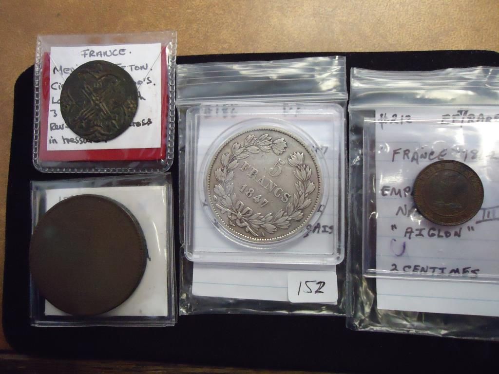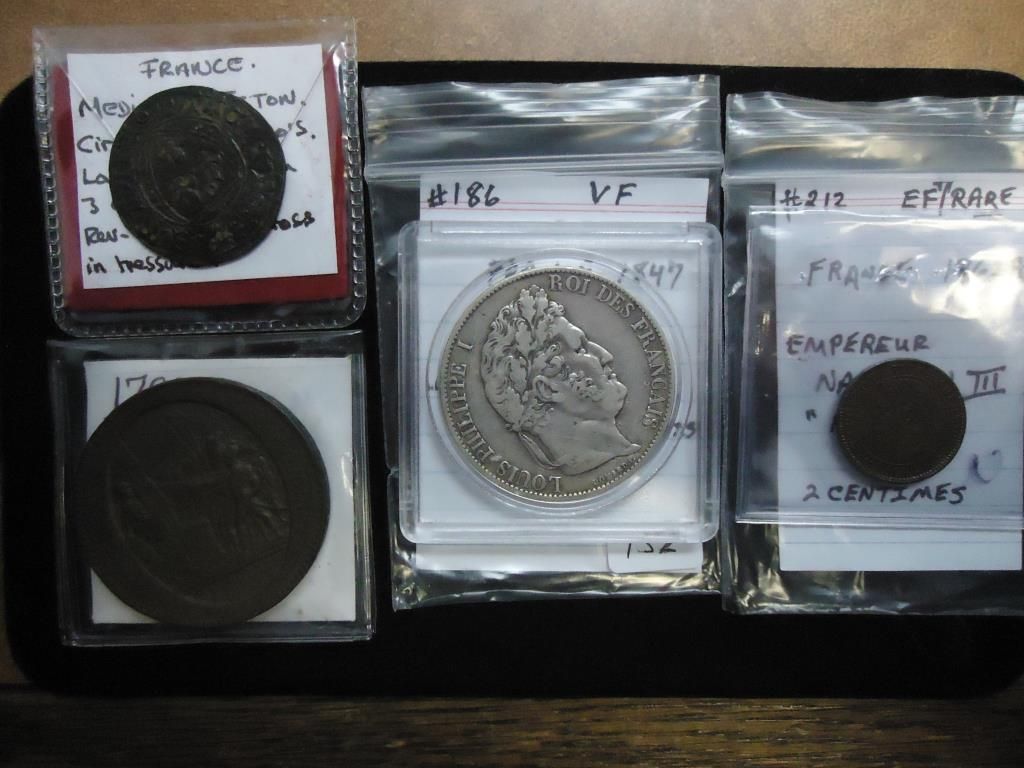 CIRCA 1300-1400 MEDIEVAL JETON VERY FINE,  1792-5 SOLS FINE, 1847 SILVER 5 FRANCS VERY  FINE AND 1862-A 2 CENTIMES (EXTRA FINE+)