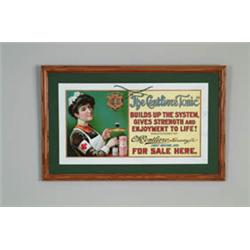Lot # 562 NICE CARDBOARD LITHO TROLLEY SHAPED SIGN FOR THE CENTILIVER TONIC. The pretty nurse about to serve a dose. SIZE: Overall is 27" w x 17" h. CONDITION: Generally excellent. 1-29641 (700-900)