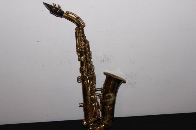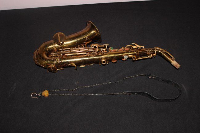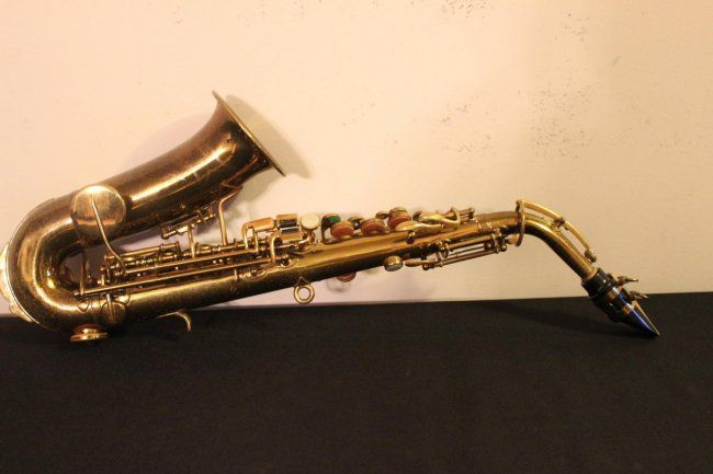 NICE CONDITION BUSCHER ELKHART LOW PITCH SAXOPHONE COMPLETE WITH COLOR AND CASE