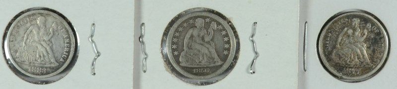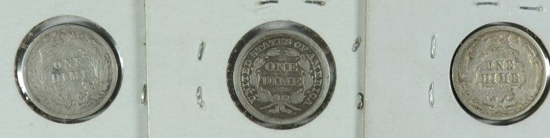 NICE DEALER LOT OF ( 3 ) SEATED DIMES, ALL VF
