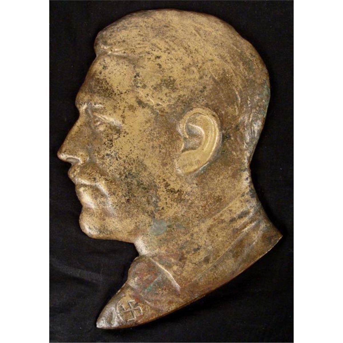 NICE DETAILED ADOLF HITLER BUST PLAQUE-CAST IRON W/BRONZE WASH-LARGE 10 x 6 1/2" * RARE LARGE VERSION- *