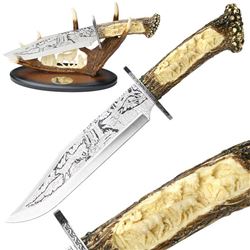 WILDLIFE EDITION 15.25" DEER DISPLAY KNIFE W/ETCHED BLA