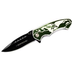 SPRING ASSISTED 8" GREEN EAGLE DESIGN DEFENDER KNIFE W/