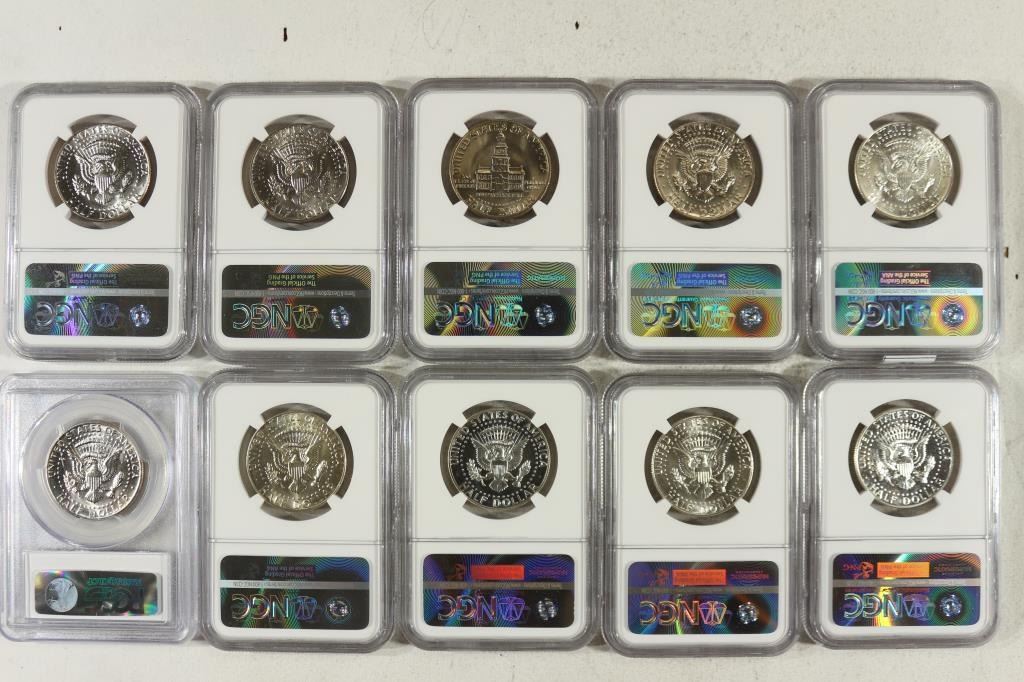 1968-D 40% SILVER NGC MS64, 1968-S 40% SILVER NGC PF67 STAR, 1969-D 40% SILVER NGC MS64, 1970-S 40% SILVER NGC PF67 CAMEO, 1970-D 40% SILVER NGC MS64, 1972-D PCGS MS65, 1974-D NGC MS64, 1976-D NGC MS64, 1982-P NGC MS64 AND