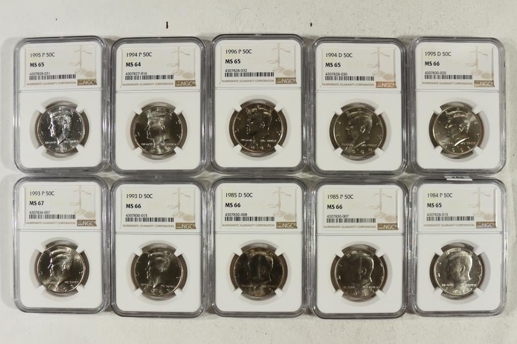 1984-P NGC MS65, 1985-P NGC MS66, 1985-D NGC MS66, 1993-D NGC MS66, 1993-P NGC MS67, 1994-P NGC MS64, 1994-D NGC MS65, 1995-P NGC MS65, 1995-D NGC MS66 AND 1996-P NGC MS65