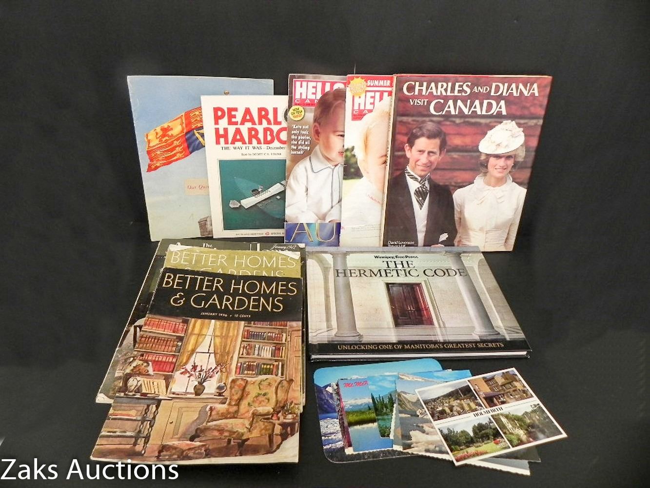 NICE LOT OF ANTIQUE AND VINTAGE BOOKS AND MAGAZINES AND POSTCARDS