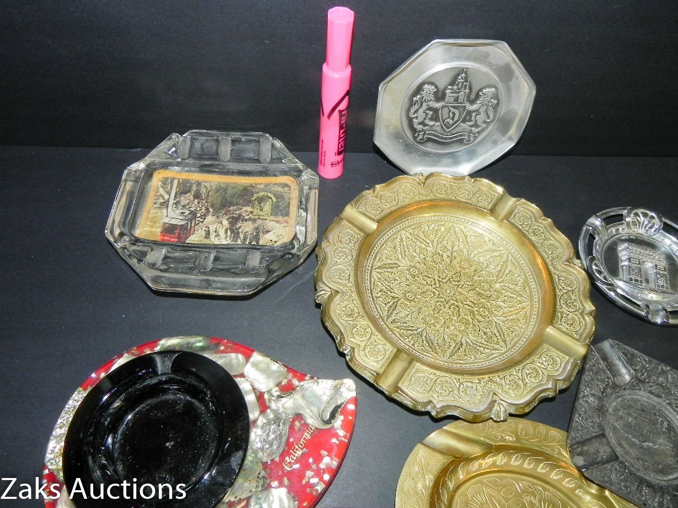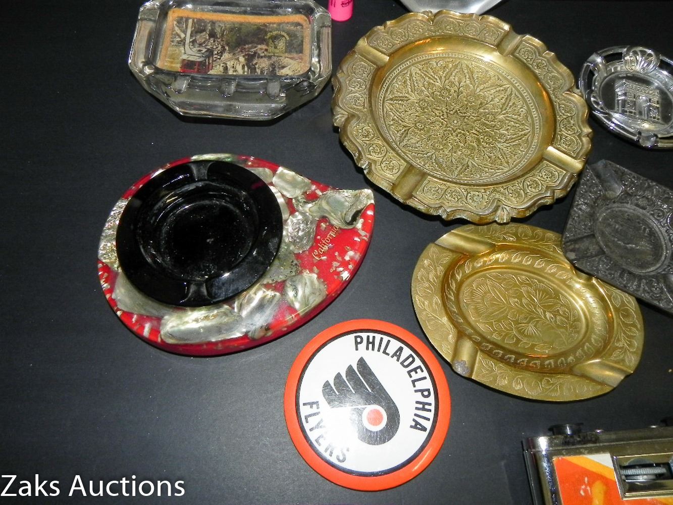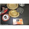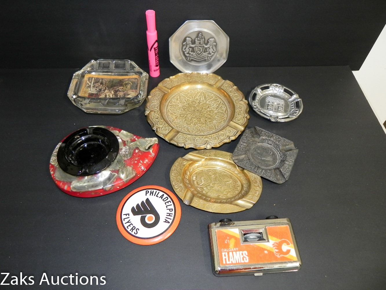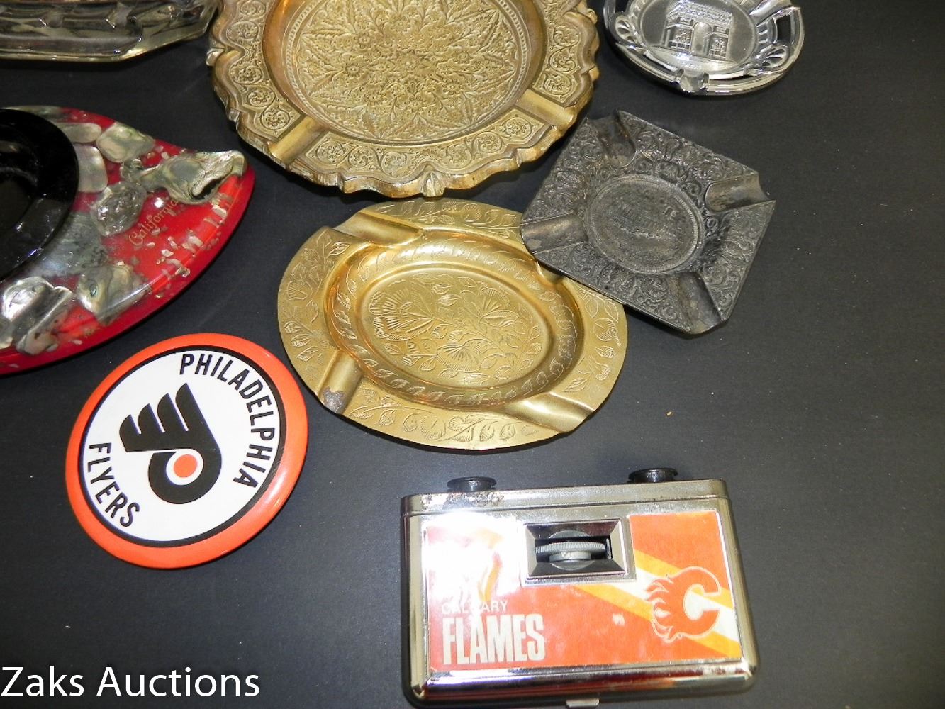 NICE LOT OF COLLECITBLE ASHTRAYS AND HOCKEY STUFF