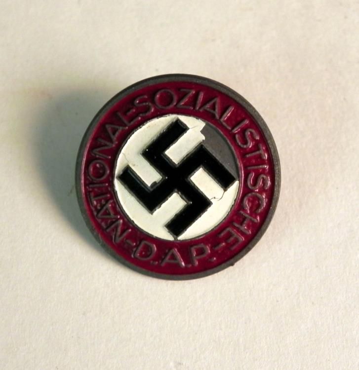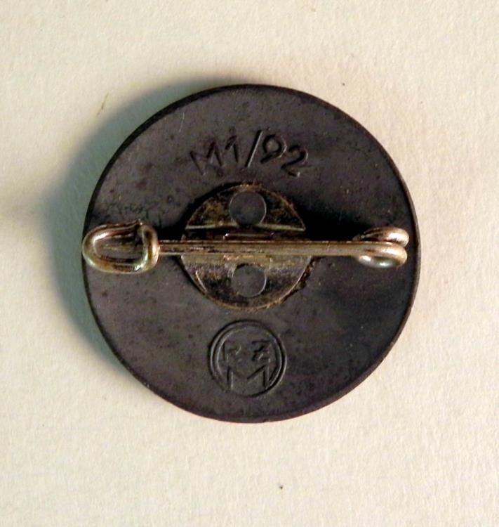 NICE ORIG NAZI PARTY MEMBER'S BADGE-NSDAP-MARKED RZM -M1/92---PAINTED VARIETY WITH BLACK SWASTIKA CENTER
